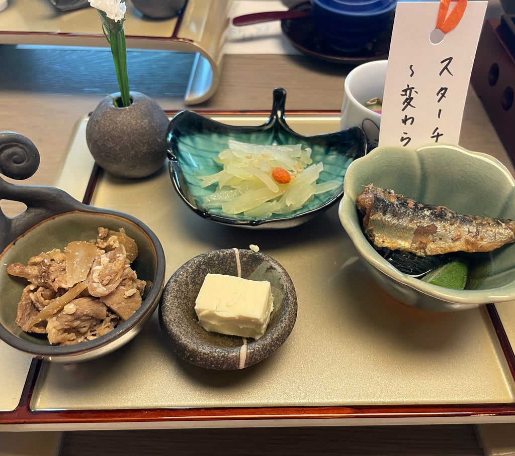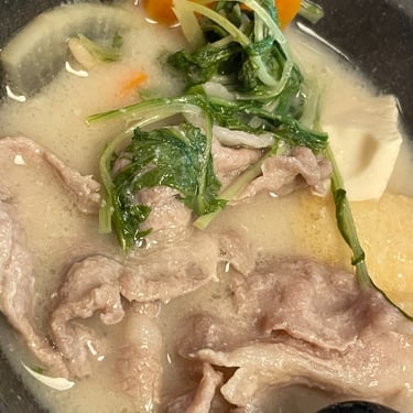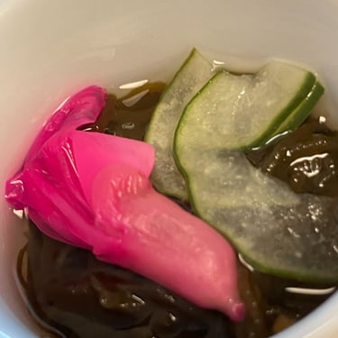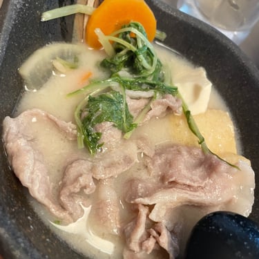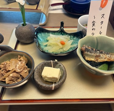 Maintenant, parlons de la cuisine japonaise. J'ai pris le set de soba avec le pot-au-feu fait de lies de saké avec des légumes locaux frais et des tranches fines de porc. Cela, mes amis, était l'un des meilleurs plats que j'ai jamais eu, et le mélange spécial de shichimi noir qui était à table a élevé le plat à un tout autre niveau. C'était comme si mes papilles gustatives avaient touché le jackpot et décidé de lancer un défilé. Petit fait amusant sur la production traditionnelle de saké - Les lies de saké, connues sous le nom de "sake kasu" (酒粕) en japonais, sont les solides restants après que le saké liquide soit pressé du mash de riz fermenté pendant la production de saké. Ces lies ont une saveur riche, légèrement sucrée et umami, et elles contiennent des résidus d'alcool et des nutriments du processus de fabrication du saké. C'était, je crois, ma première fois à les essayer et je dois dire que ma seule déception était qu'elles devaient être gardées au frais lorsqu'on les achète à la boutique de souvenirs pour les ramener à la maison et comme je l'ai mentionné précédemment, la température extérieure était réglée sur "surface du soleil". Donc, inutile de dire que je n'ai pas pu en ramener avec moi. Mais attendez l'hiver, je reviendrai.