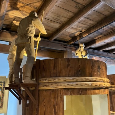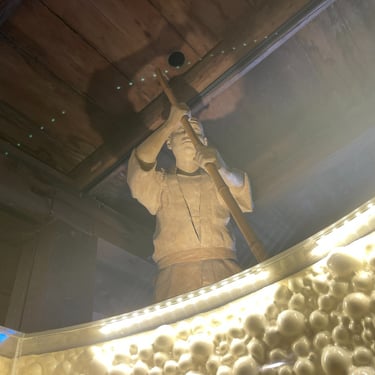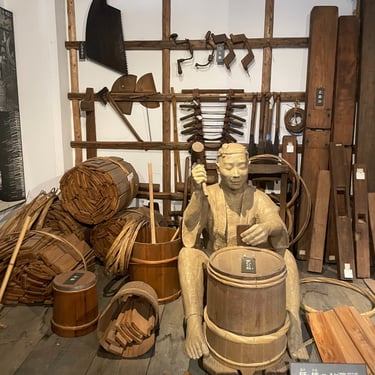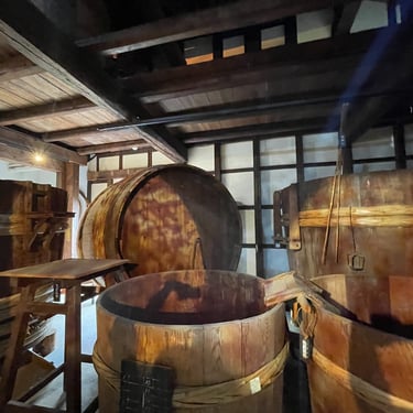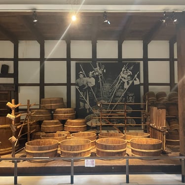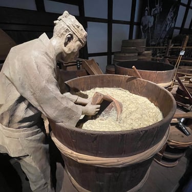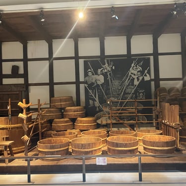Maintenant, parlons du Musée du Saké ! Le nom complet est le Musée commémoratif Hakushika et c'est LA MEILLEURE visite de brasserie de saké que j'ai faite jusqu'à présent, la visite de la brasserie de saké Geikeikan arrivant en deuxième position. Celle-ci était bien, bien meilleure dans le sens où l'on pouvait vraiment sentir qu'ils se souciaient et qu'ils mettaient un effort massif dans l'exposition et la préservation de la méthode traditionnelle de brassage du saké. Ils avaient même ces sculptures en bois montrant comment les brasseurs travaillaient autrefois au-dessus des barils. Les expositions étaient parsemées de beaucoup d'anglais, une vidéo que vous pouviez regarder, et des expositions interactives pour voir ce que c'était que de porter ou de monter dans l'un des barils. C'était comme un mini-Disney pour les amateurs de saké, sans les longues files d'attente et les oreilles de souris hors de prix.